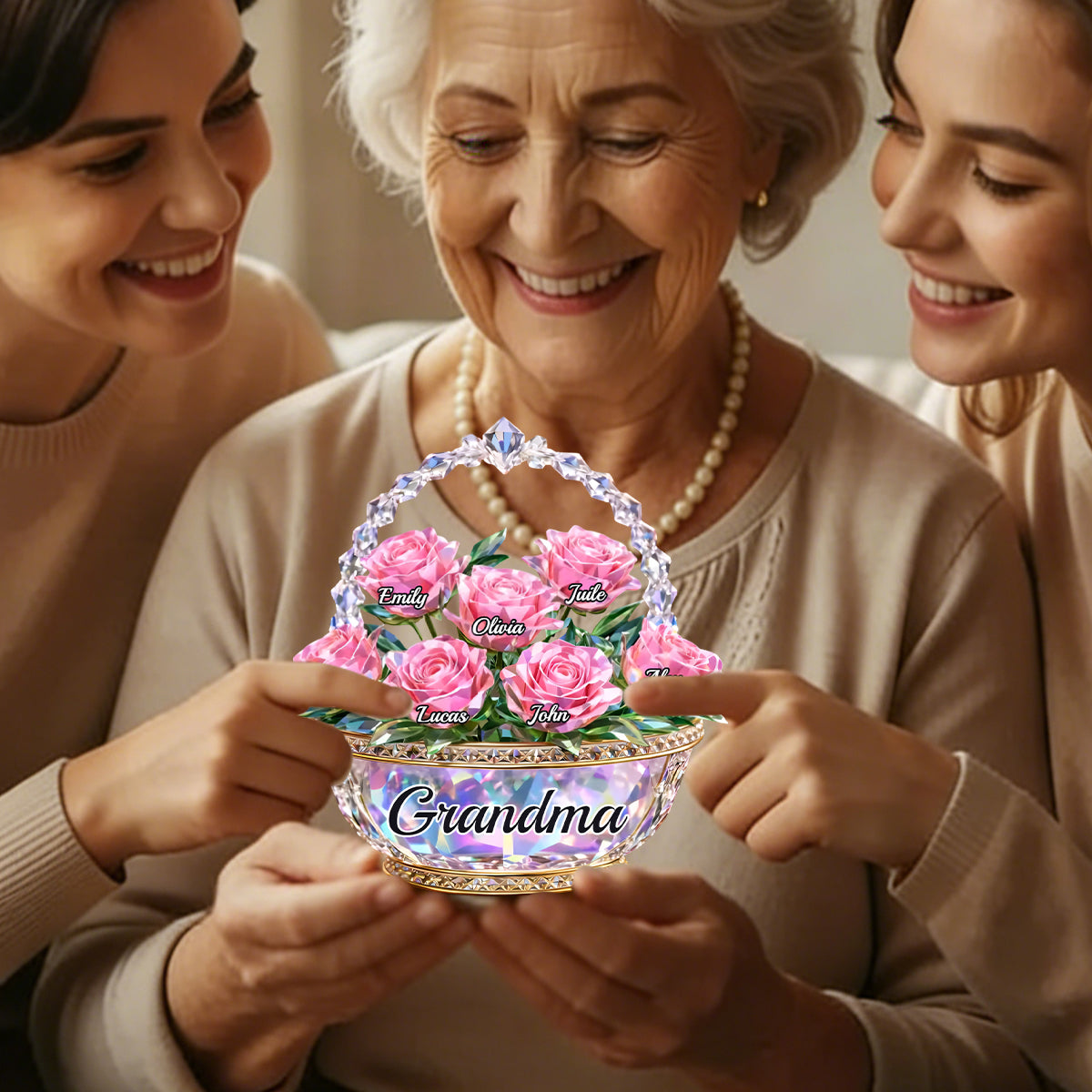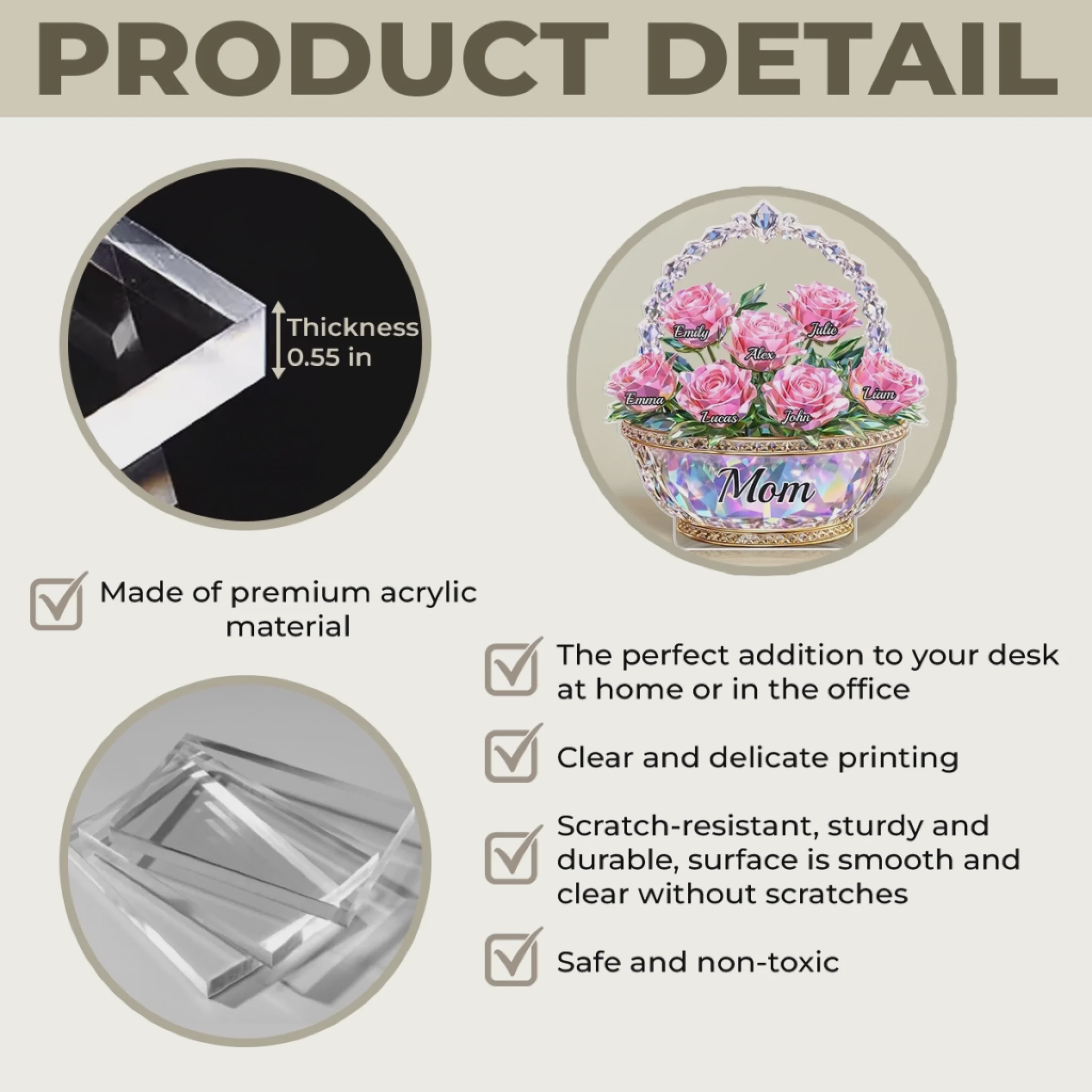 Honor the warmth and comfort of a mother’s love with this Personalized "Mom Is My Home" Shining Flower Basket Acrylic Plaque. Featuring a delicate floral Flower Basket design with a soft shimmering effect, this elegant plaque is custom-engraved with Mom or Grandma’s name, creating a radiant and heartfelt tribute to the place her love calls home.