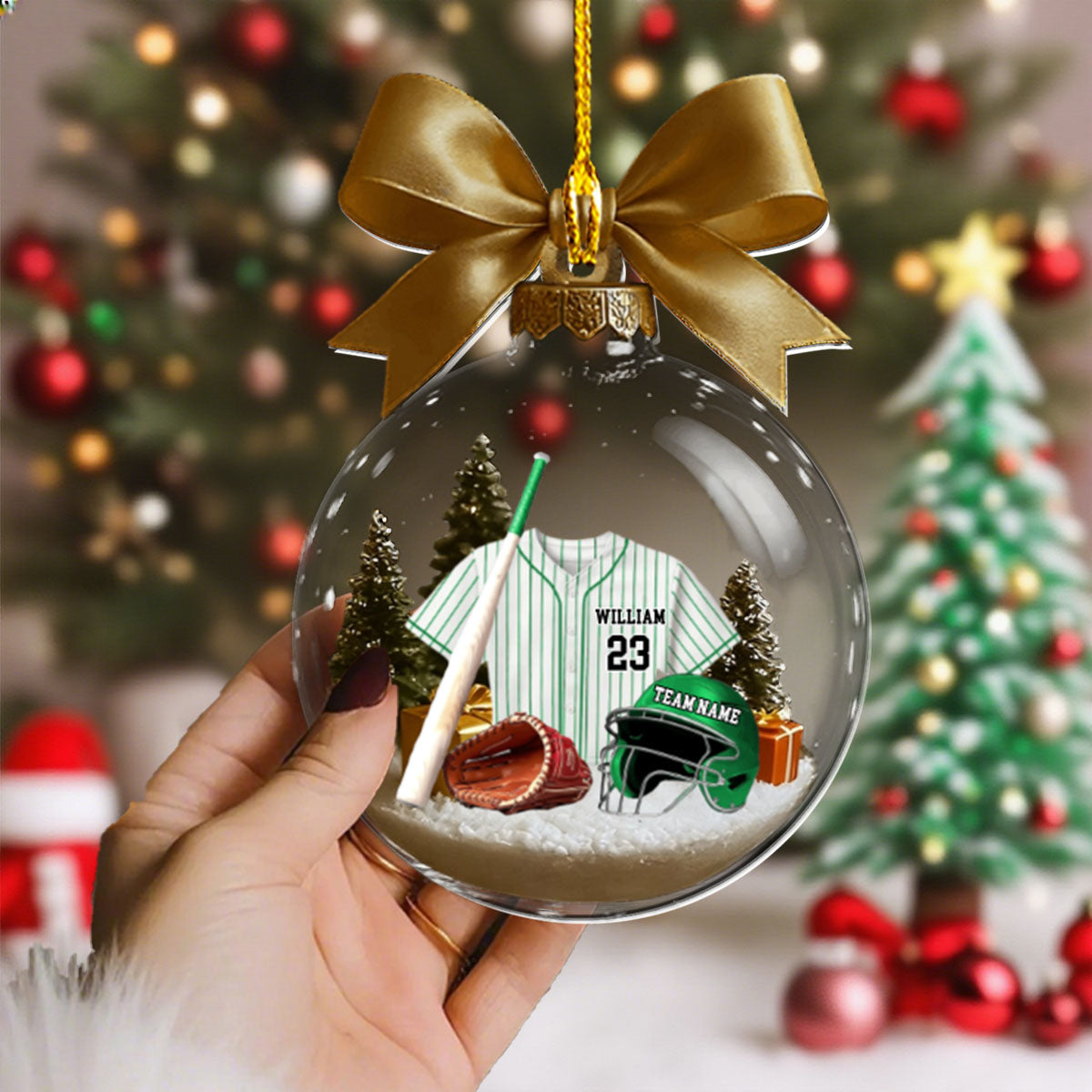 Celebrate a love of baseball with this personalized Christmas ornament featuring a classic shirt, helmet & gloves. Add a name or year to create a unique keepsake for players, fans & families.⚾ Crafted with attention to detail, it makes for a unique decoration or special keepsake. Show your love and support for the sport with this personalized ornament!🥳