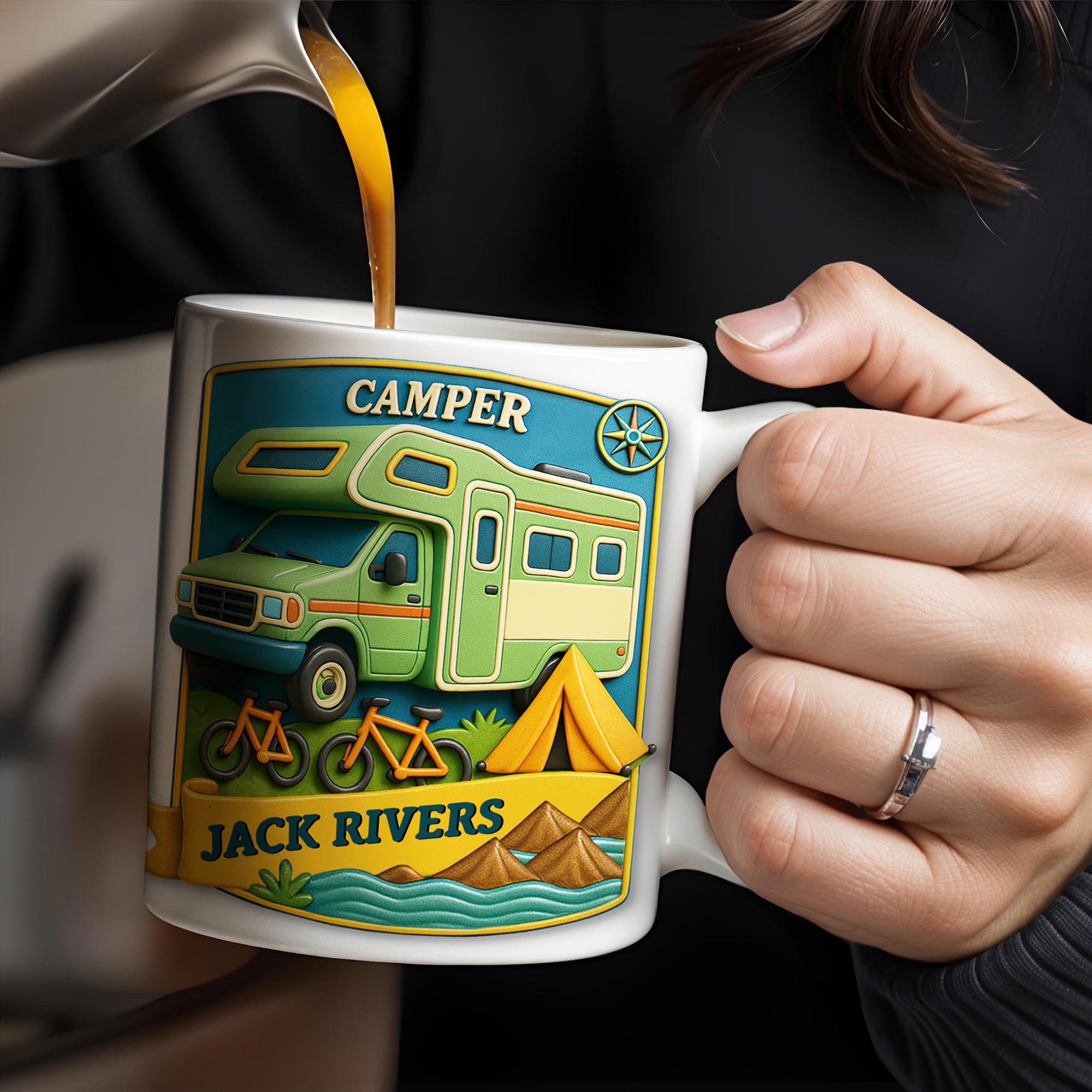 Unleash your wild side with this personalized coffee mug, boldly featuring a Campervan, tent, and bicycles design. Tailored for outdoor enthusiasts who crave adventure, it’s the perfect way to fuel your mornings with a fearless spirit. Durable and unique, this mug turns every coffee break into a call to explore.🚴