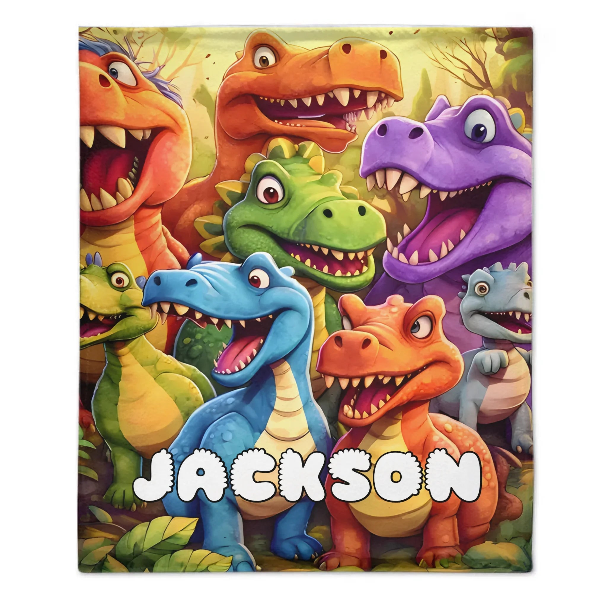 Cute Dinosaur Personalized Name Blanket Gift For Kids, Children