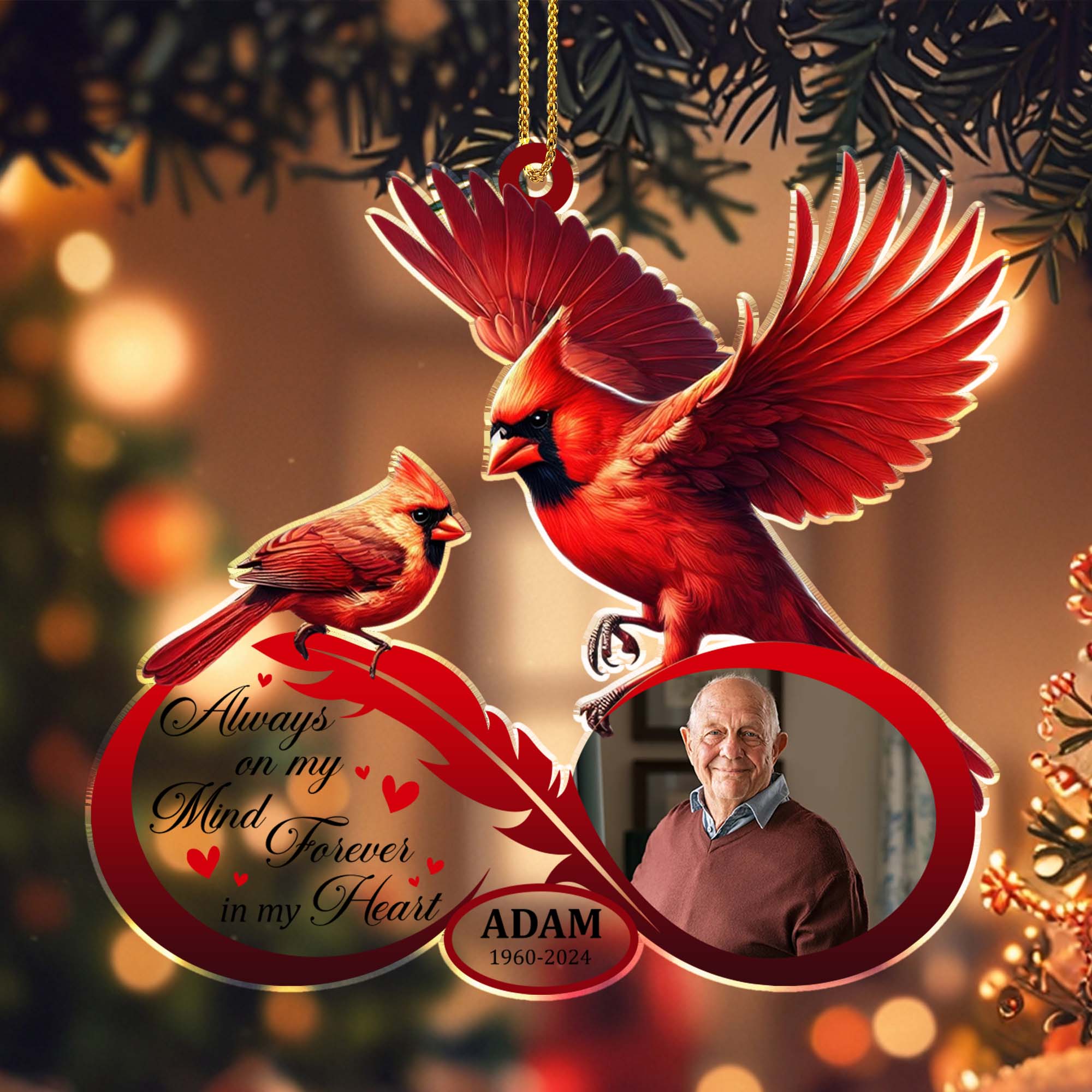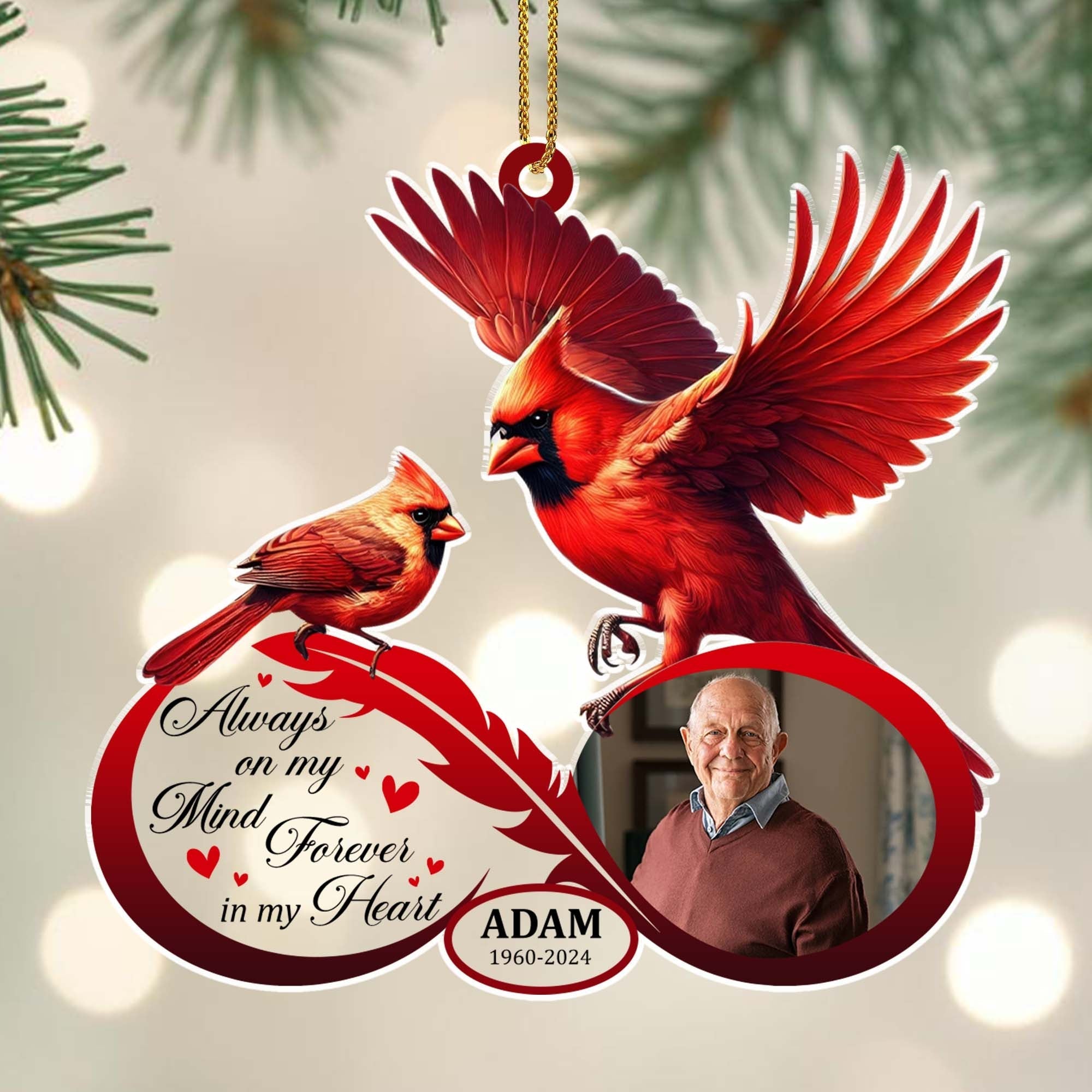 This personalized "Always on my Mind" commemorative acrylic pendant, featuring a gentle red bird symbolizing love and longing, is a thoughtful gift for those who have lost a loved one.