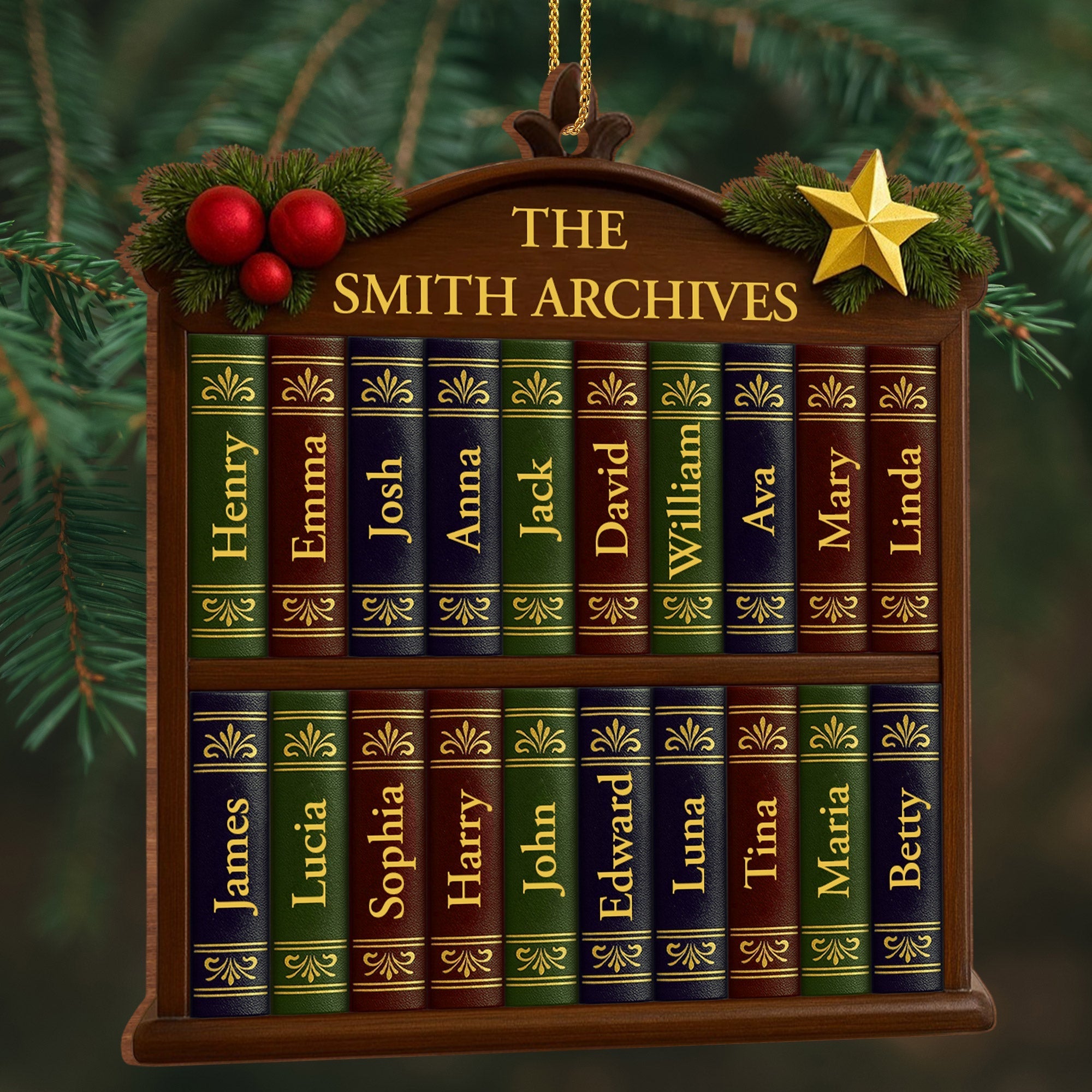 Capture Your Family Story With A Customizable Bookshelf Ornament, Personalized Wood Ornament