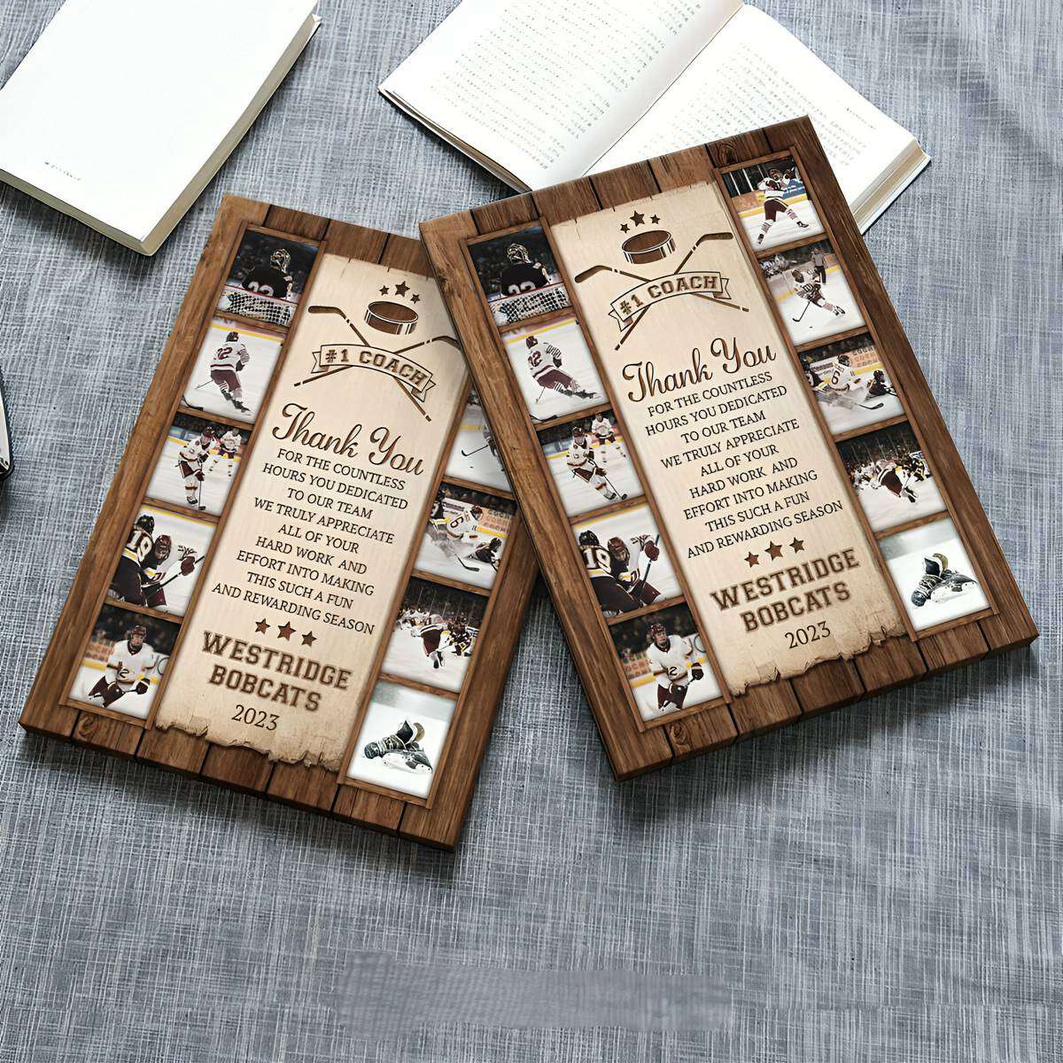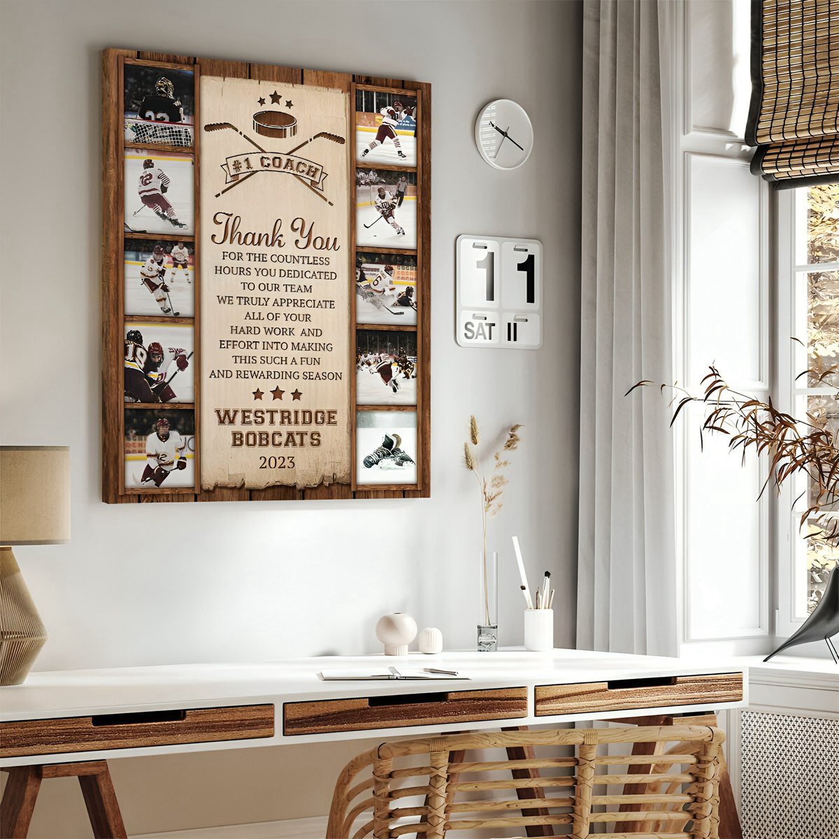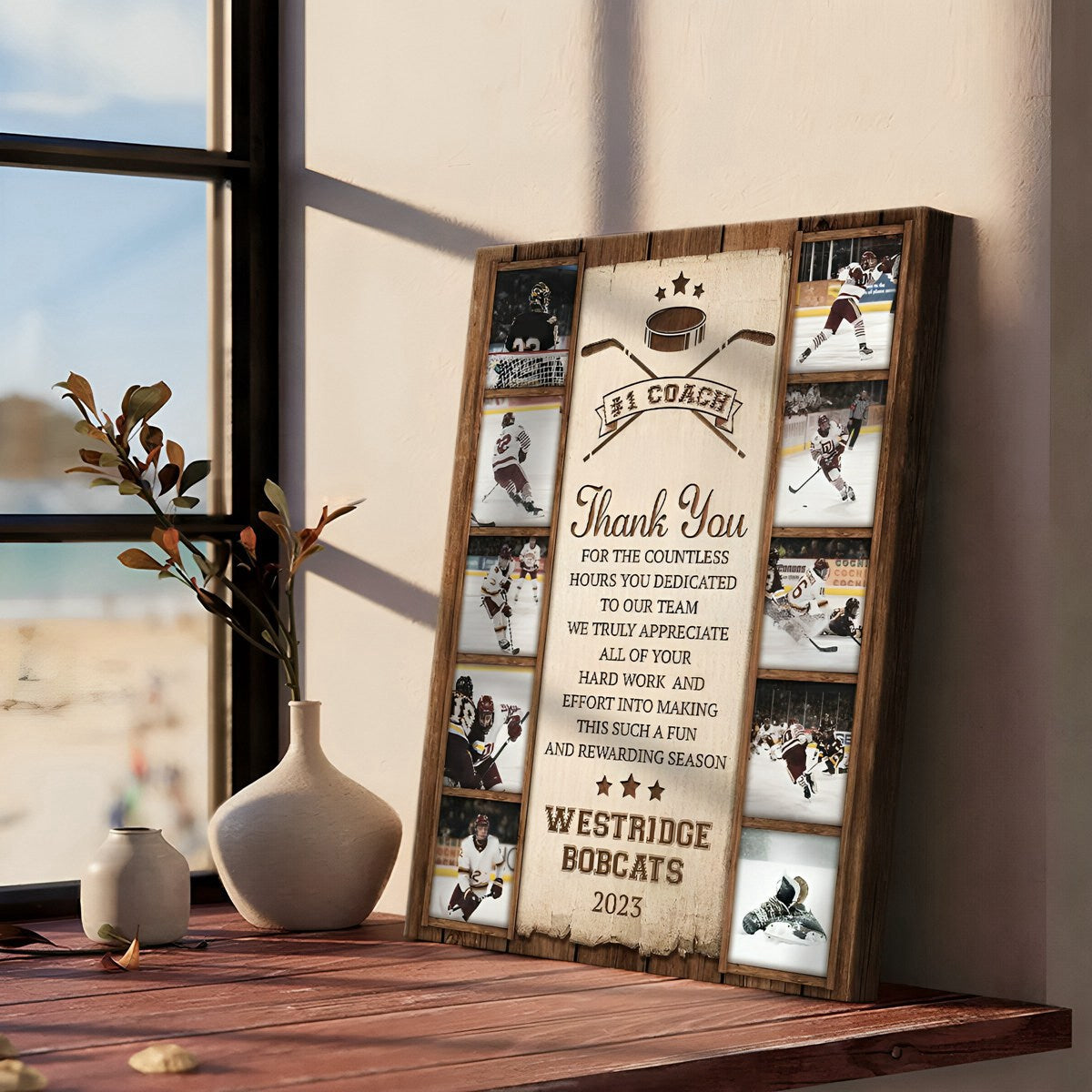 Hockey Photo Collage Personalized Canvas/Poster, High School Hockey Coach Thank You Gift
